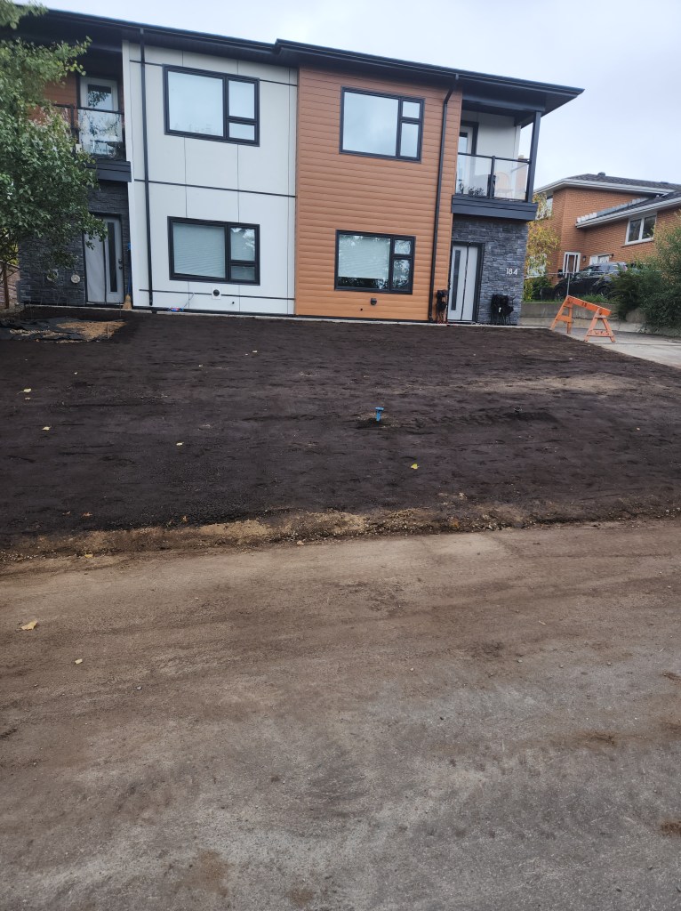 Soil and Sod – Remove existing sod, level/fill with top soil, new sod installation and waste removal.